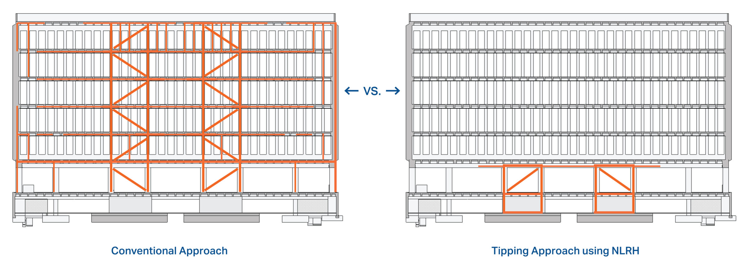 The previous retrofit scheme, which we presume was based on a linear analysis, utilized an extensive amount of Fiber-Reinforced Polymer wrapping throughout the interior of the building as well as multiple new full-height steel frames. An alternate solution that would be less disruptive, avoid tenant displacement, provide significant cost savings, and mitigate impacts to the building space plan, window placement, and views was a compelling prospect.